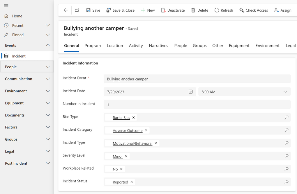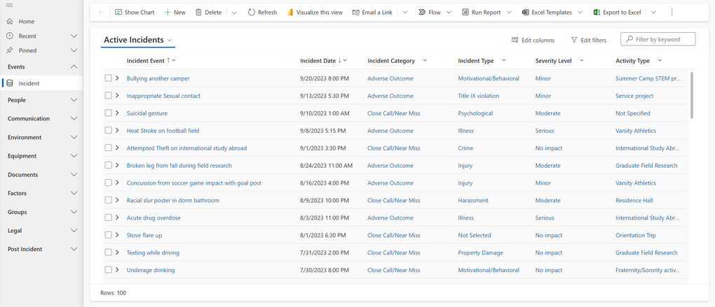 Start at the top level and drill down into your data to see an incredible level of detail. From here you can record the incident, track communications and follow-up, implement reporting requirements all within one central database. When you need to develop annual reports and analyses, it’s all in one location.